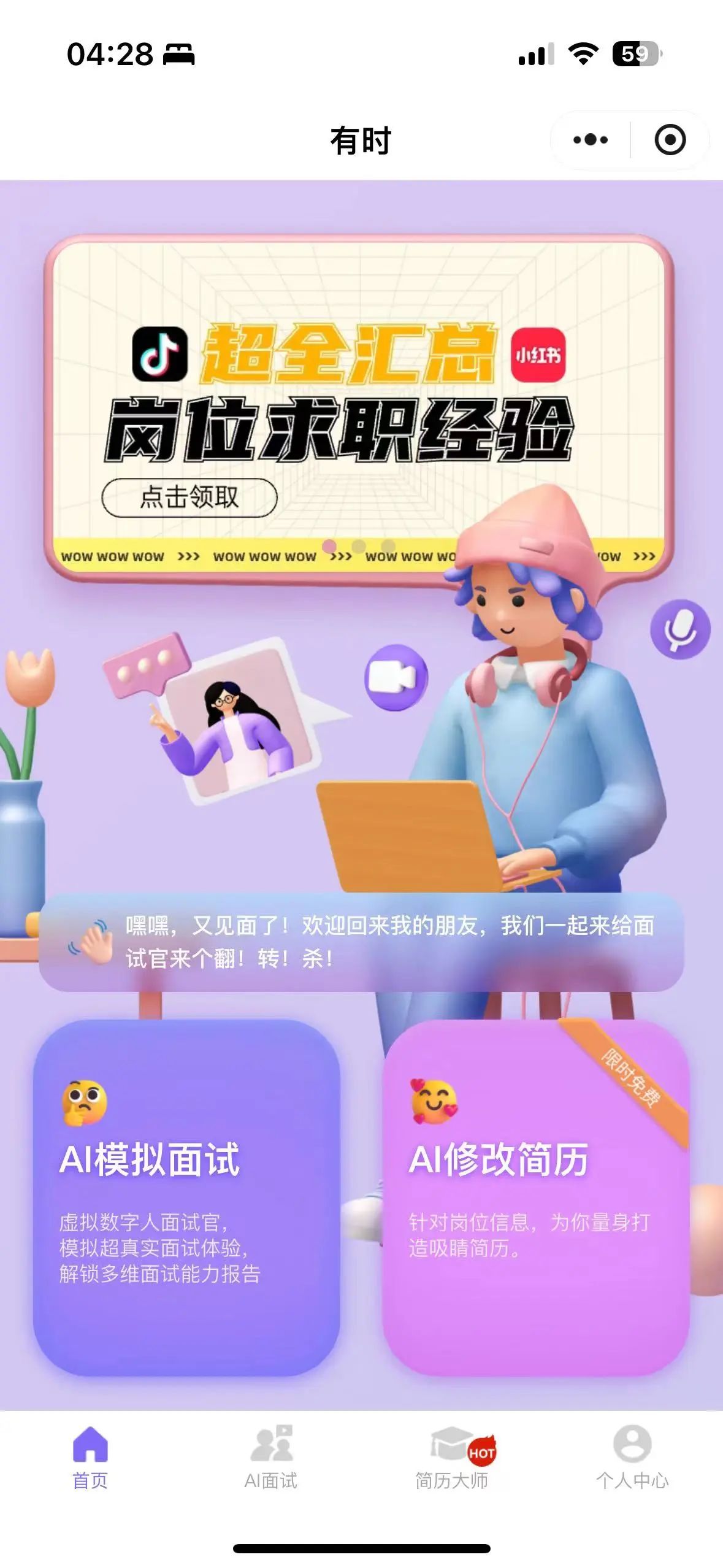有时是智谱推出的AI简历和AI面试产品,汇聚热门岗位面试真题,打造满足学生需求的一站式就业指南,为学生职场面试保驾护航。