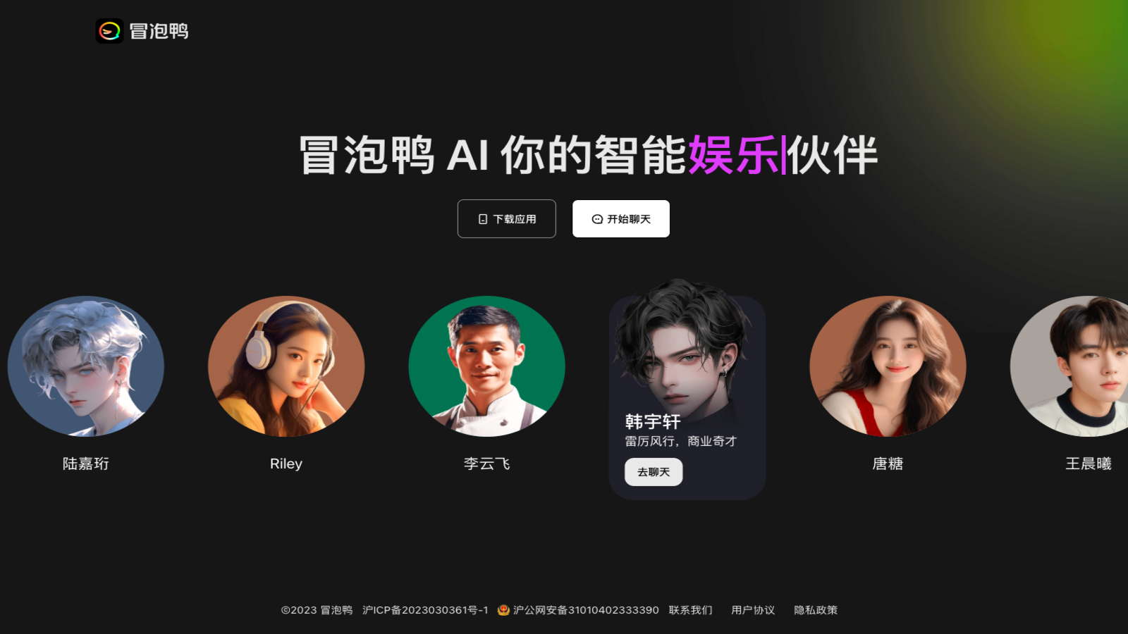 冒泡鸭是阶跃星辰推出的一款AI驱动的开放世界平台,专注于提供休闲娱乐体验。这个平台拥有一个由大量智能体构成的互动环境,用户可以在这里体验到各种引人入胜的对话和剧情互动游戏。在冒泡鸭创造的虚拟世界中,用户可以沉浸在由先进的多模态大模型所驱动的丰富内容之中。平台不仅提供了多样化的剧情和角色设定,还鼓励用户发挥创造力,自行探索和创造。