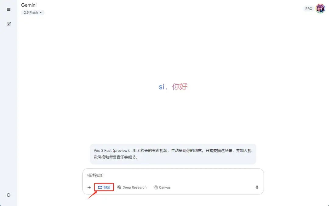 方法二: 打开Gemini官网https://gemini.google.com,登录Google账号点击“视频”选项。