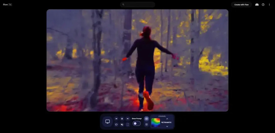 使用屏幕底部的遥控器可浏览频道,并查看生成片段所使用的提示词。如: