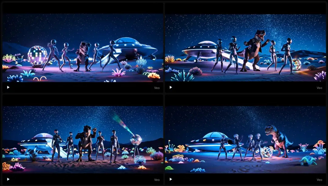 7.文生视频:迪斯科高潮,外星人和霸王龙跳迪斯科舞蹈