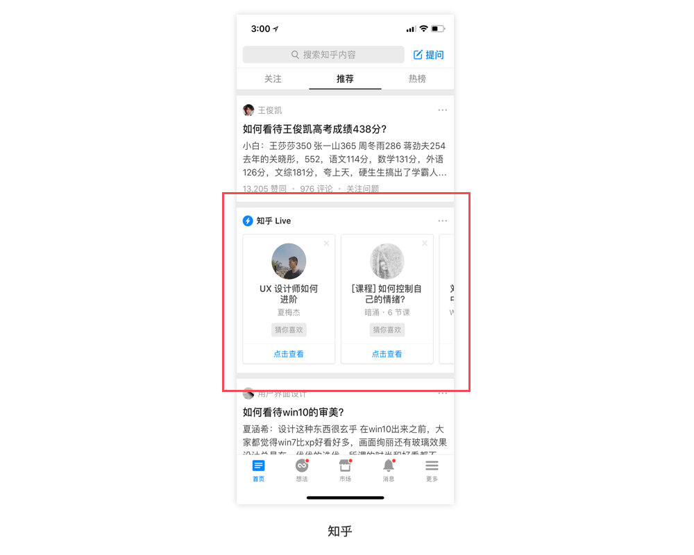 比如,知乎feed流里增加知乎live的横向滑动内容。
