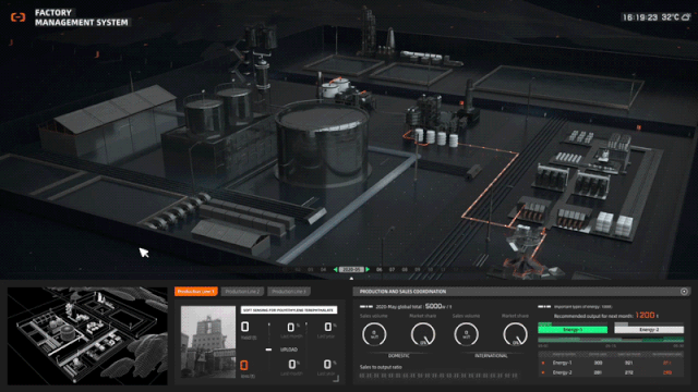物理空间的模拟增强了业务代入感,但使用者也需要看到设备内部的运行状态、工作流程、耗损情况等,因此设计师们从行业特殊性和现场需求出发,同时产出了相应的数字仿真场景。通过数字孪生场景的搭建和数据可视化,可以实时同步产销协同过程,降低决策风险,加速推动工业制造的智能化转型升级。