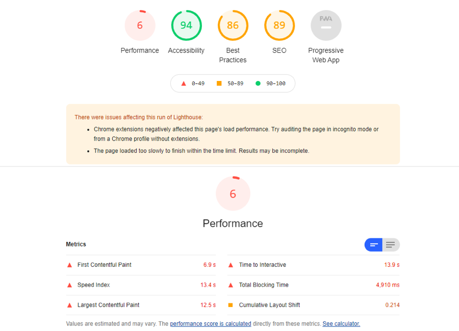 例如,假设一个不稳定的元素覆盖了总窗口大小的 40%,当页面加载时它向下移动了 20%。在这种情况下,因为不稳定元素占用了总窗口的 60%,影响系数将为 0.6。又由于不稳定元素向下移动了 20%,因此距离系数将为 0.2。