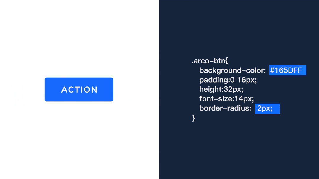 Arco 在底层设计上,结合了 Less 和 CSS 变量各自的优势。Less 变量负责编译时的色彩计算,基于主色计算亮 / 暗两套梯度色板,CSS 变量负责页面渲染时的最终引用,从而实现了无缝切换亮 / 暗色风格。用户既能享受 CSS 变量带来的丝滑切换体验,又能享受 Less 变量带来配置单个主色即可生成整套色板的便捷,兼顾优雅与易用。