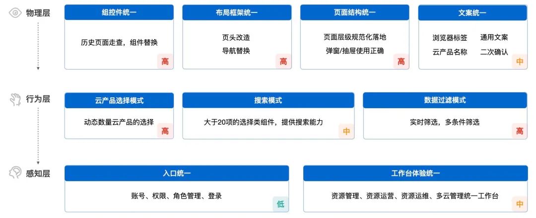 “一致性”不是一天建立起来的。首先,设计师要直面“业务错综复杂、依赖公共云产品、客户需求多样化”的产研外环境,又要克服“资源少、交付快、多版本”的研发内环境。在每个版本研发周期中,留给我们的时间其实非常少,如何将“一致性”分阶段有效落实是我们必须面临的挑战。