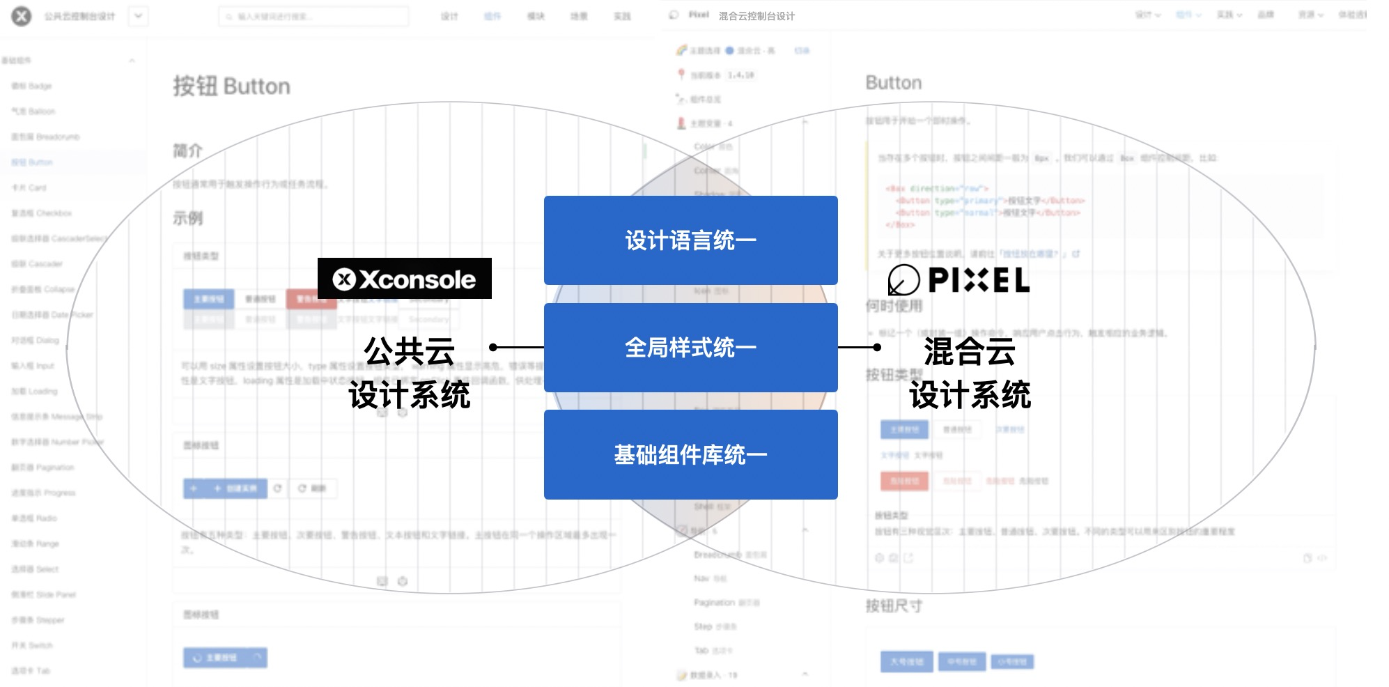 对于企业用户而言,无论多少部署地点,无论购买了多少云产商的产品服务,控制台都应该提供“一朵云”的管理体验。未来的企业用户很大可能是混合云用户,也会是多云用户。所以,我们从设计系统创建初期就与阿里云公共云保持设计共建,在设计语言、全局样式、基础组件库上达成了一致。再者,混合云控制台中有大量页面直接集成公共云页面,所以拉通设计底层,只会让内部整体更一致、更可控。