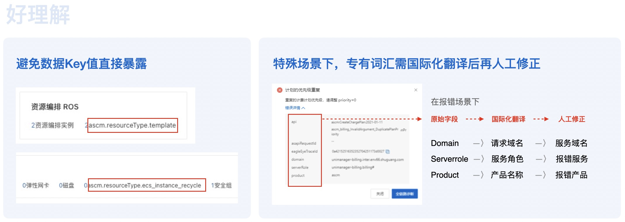 【好理解】避免机器语言直接暴露,也要考虑国际化翻译后是否符合当前语境。