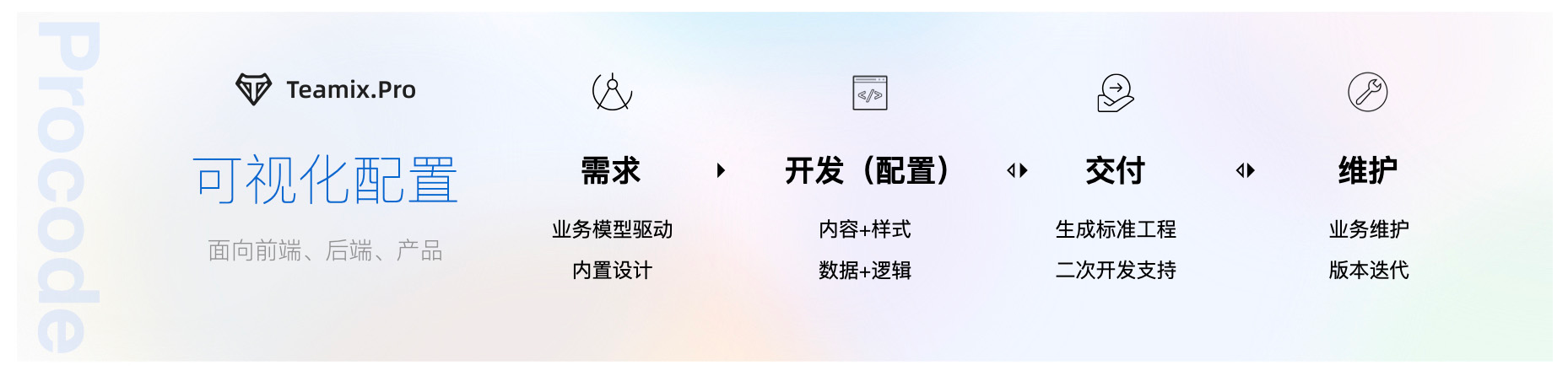 【准】面向开发者,我们提供了“精于心,简于行”的前端开发解决方案Teamix Pro 。它预设了混合云业务所有通用场景的UI样式和逻辑性代码,让开发者大胆跳过那些「重要但你又不想关心的样式、逻辑」,全力关注真正复杂的业务逻辑实现。Teamix Pro 致力于完美还原设计规范,用大组件思路拼装页面,最大程度减少页面代码量,让「高质量还原」和「高效开发」同时成为可能。