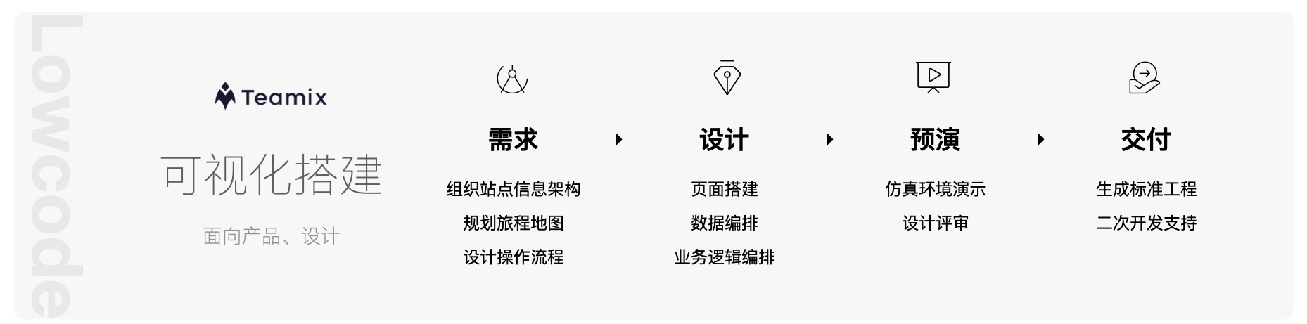 【快】面向产品经理和设计师,我们建立了一个搭建平台Teamix,将混合云设计规范内置到搭建物料中,让需求方在原型阶段更多关注业务逻辑本身而少关注设计规范的约束,让专业人做专业事。需求沟通和设计协同在一个平台上进行,也是为了让不同角色能更可视、更精准、更自由的「在线」表达。