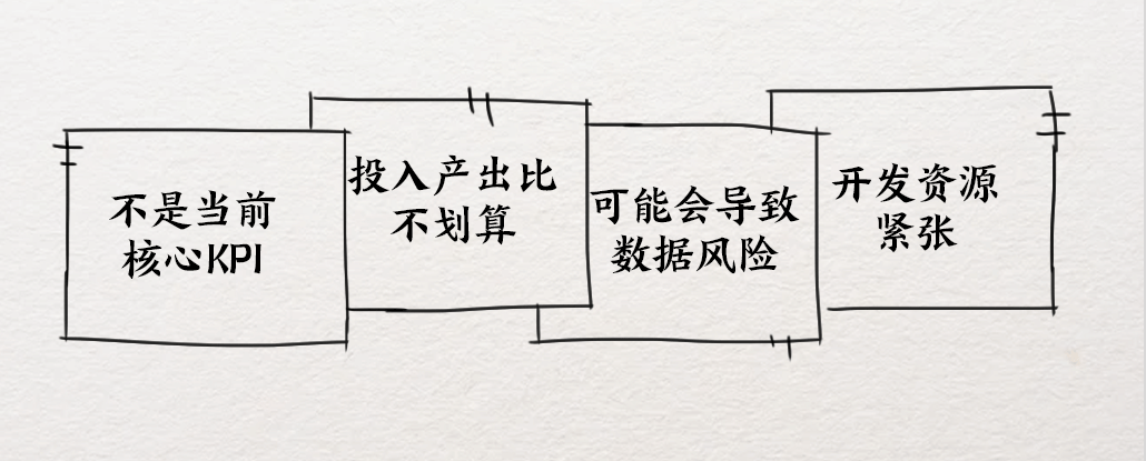 2.投入产出比不划算,方案在产品看来投入的人力/时间/资源过大,并不值得;