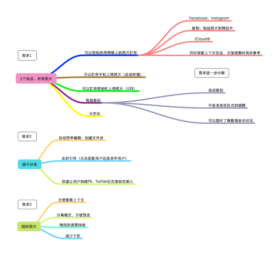 Jared有4点需求,通过分析他的故事,我们了解到最关键的一点是,Jared经常会在同一地点拍摄照片,他想要让照片组织有序,然后分享给朋友。