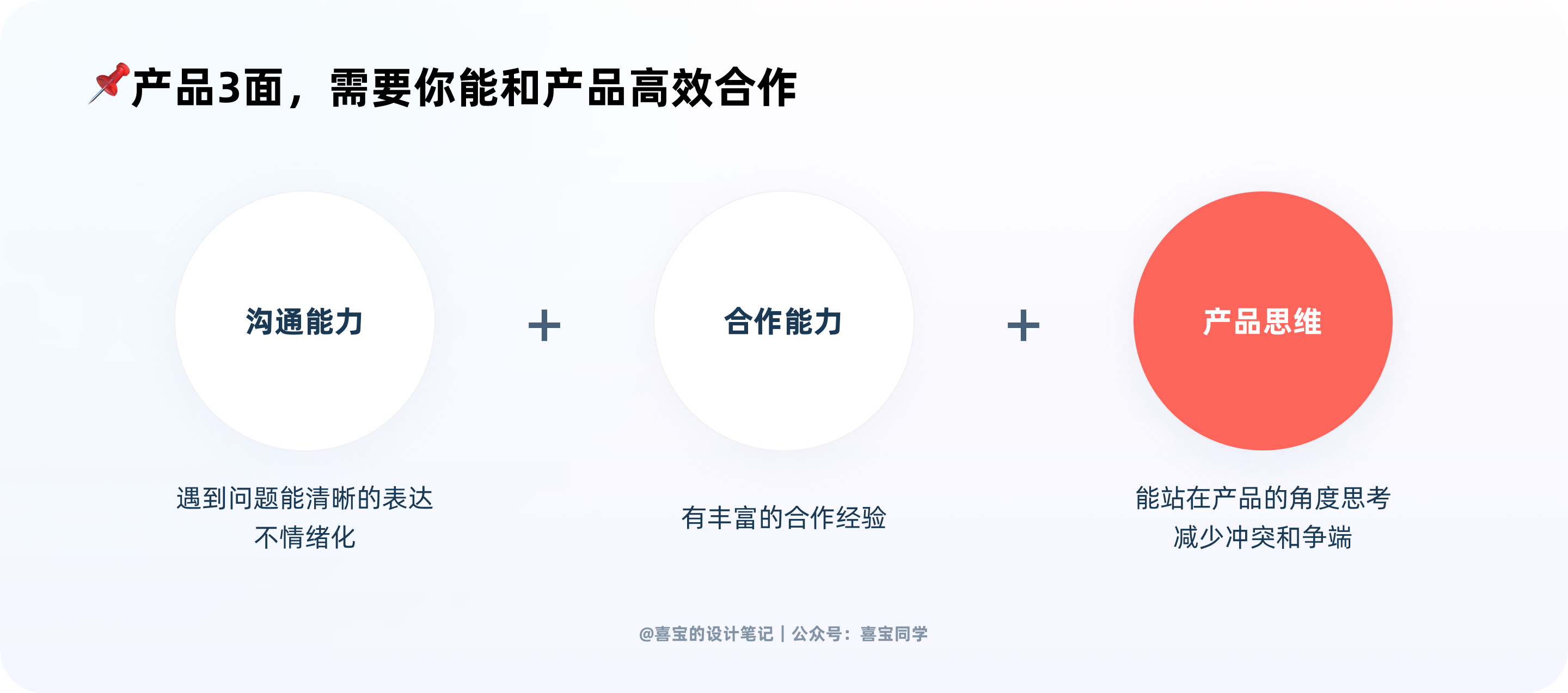 先描述产品和设计的分工,为什么产生歧义,再说我们如何避免/处理争端(由于已经在产品面了,这时候就要体现你如何为产品着想,体现你的善解人意~)