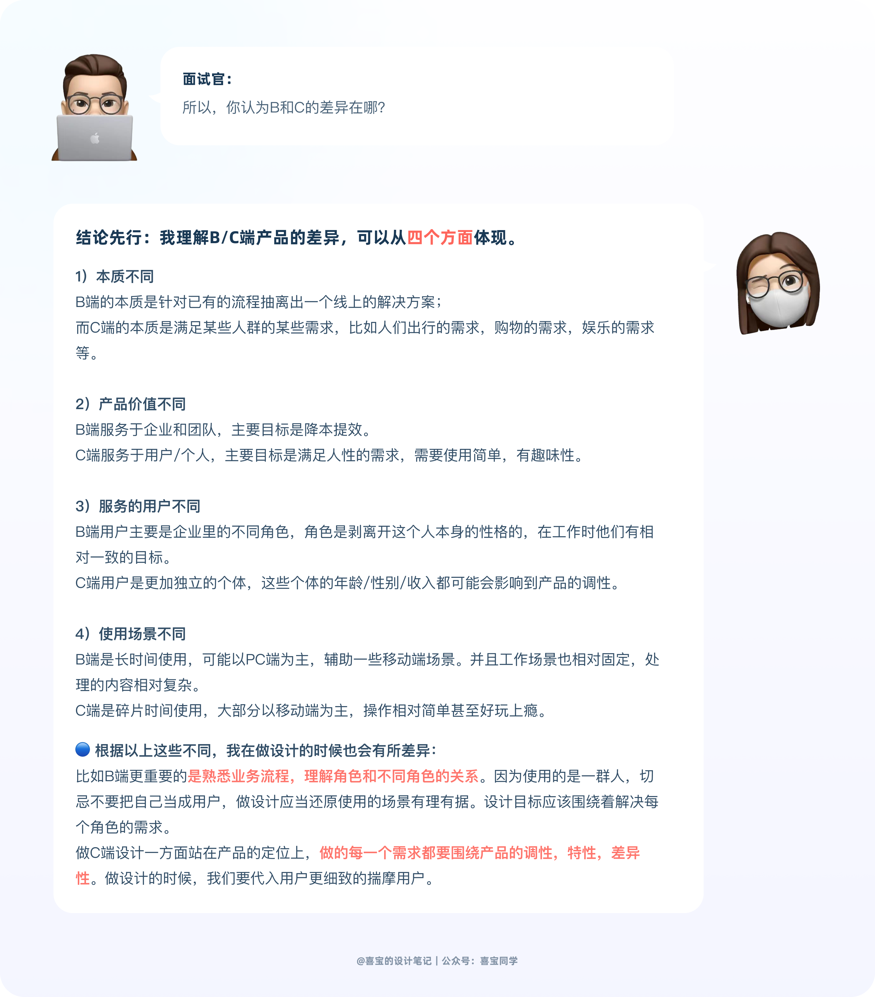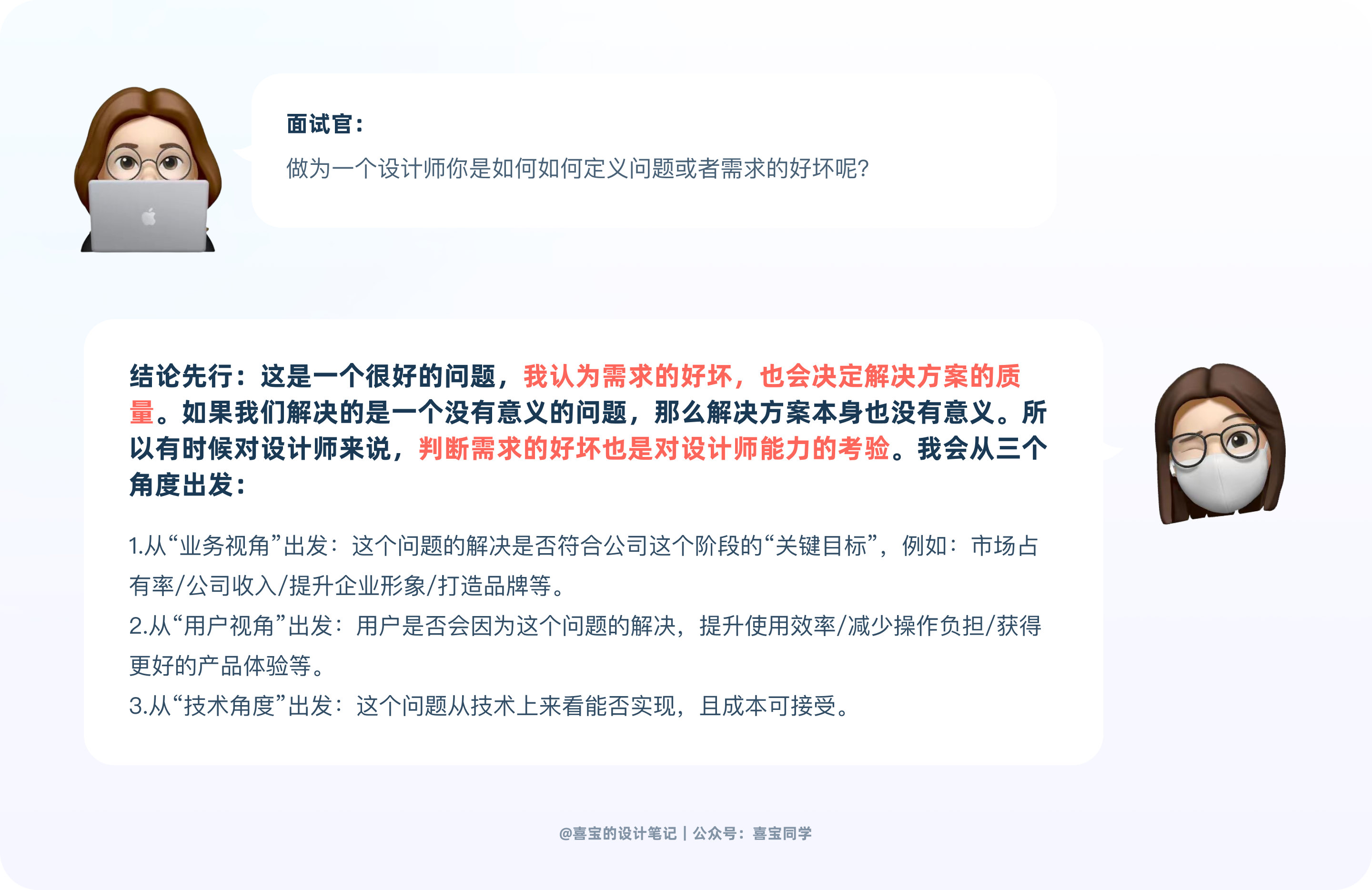 比如我会从本质/产品价值/服务用户/使用场景/设计执行,五个角度来回答。