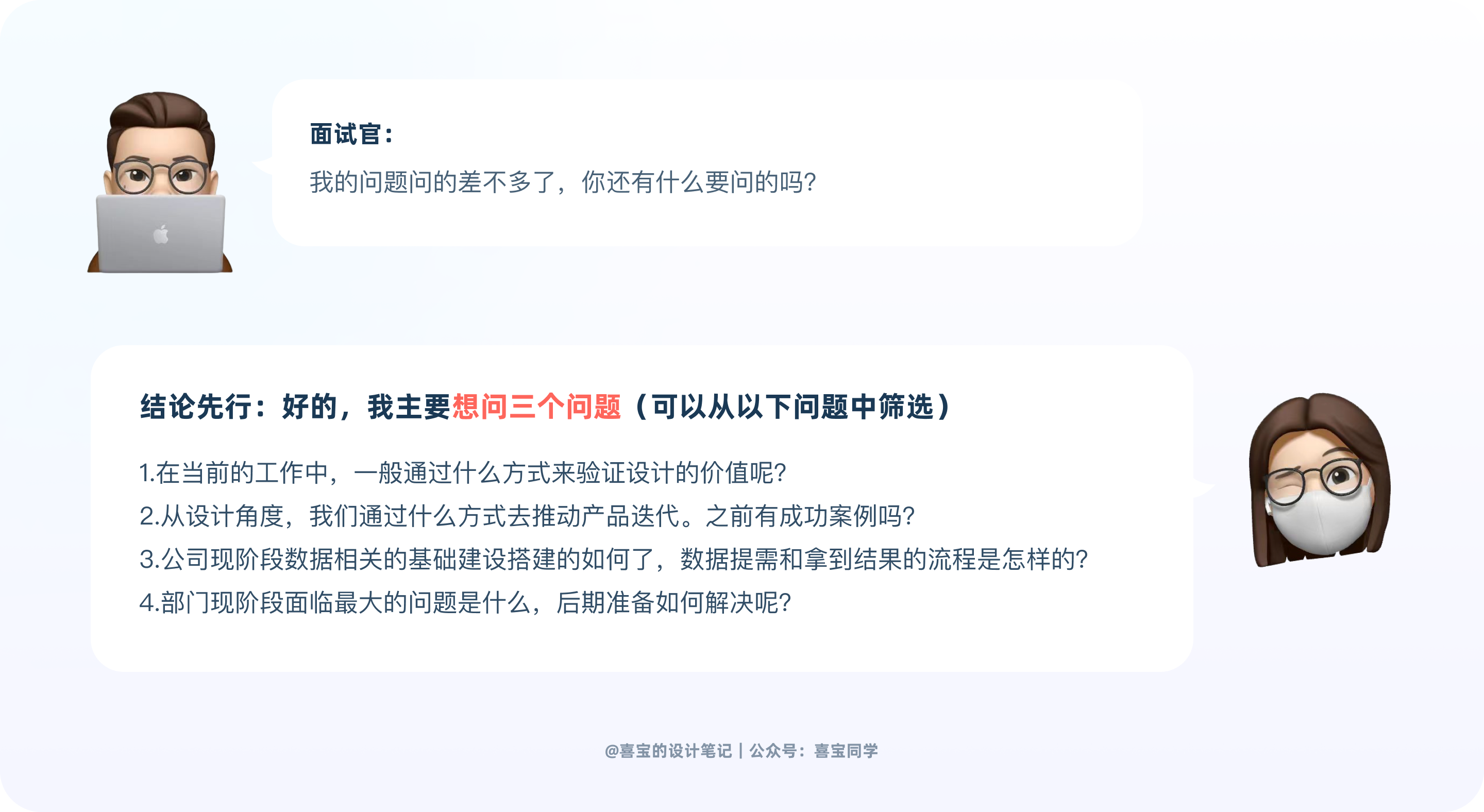 问公司发展,体现你不光关注设计,同时我们也关心业务关心公司战略。