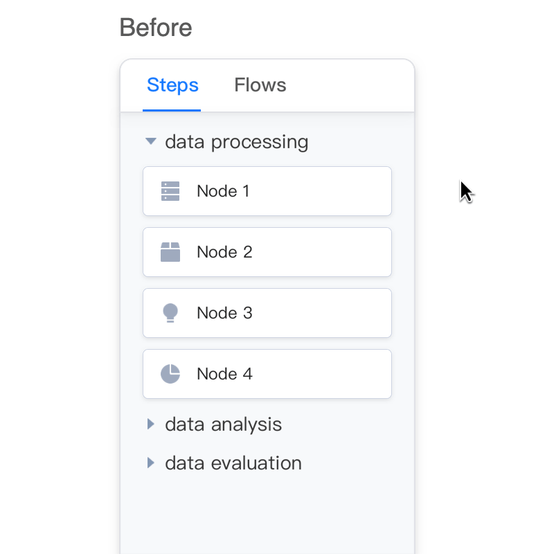 一个任务尚且这么复杂,而图编辑器中任务的类型也很复杂,数量也更庞大。用户在使用图编辑器时,会经过编排、配置、查看、分析到完成等多种类型的工作流,每个任务流中的细分任务类型会非常的多,这导致用户的操作入口也很多,这也提升了计决策的难度。