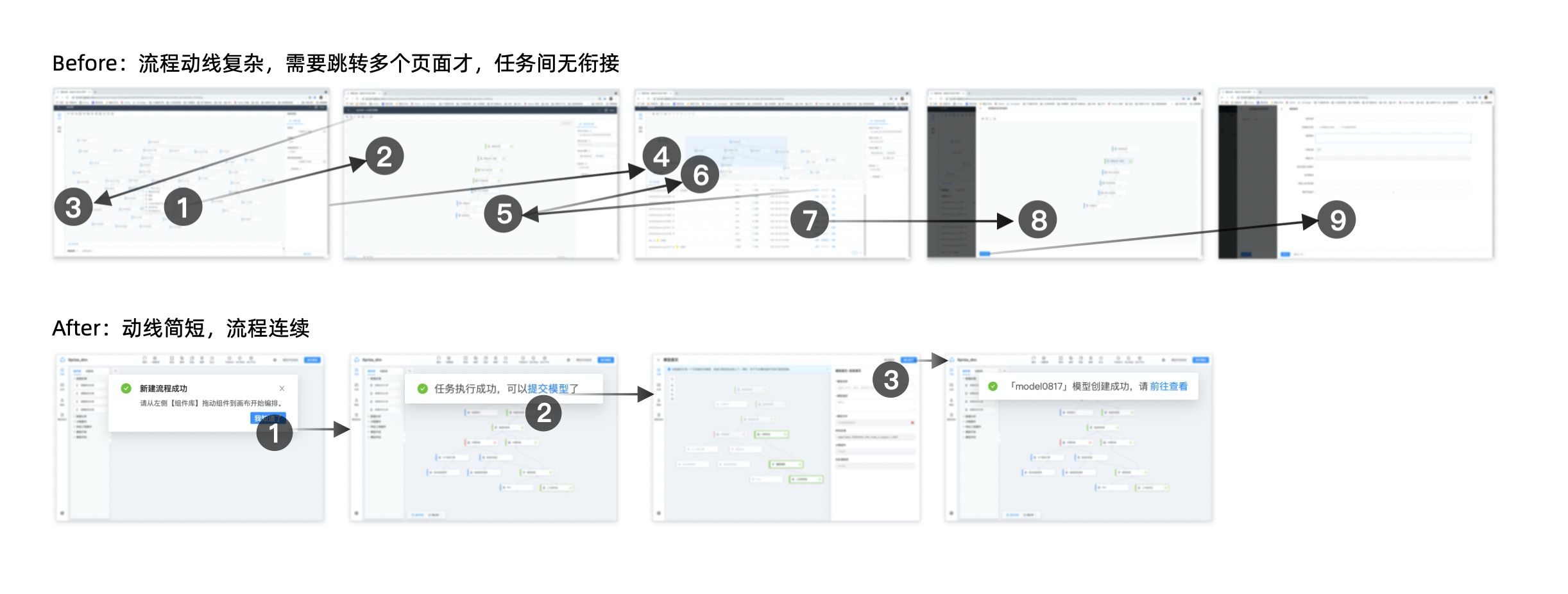 同时,从产品编排规则的制定出发,在流程有固定结构的情况下,限制自由移动,通过降低自由度的方式,来减少小白用户犯错的机会,也让其更易上手。