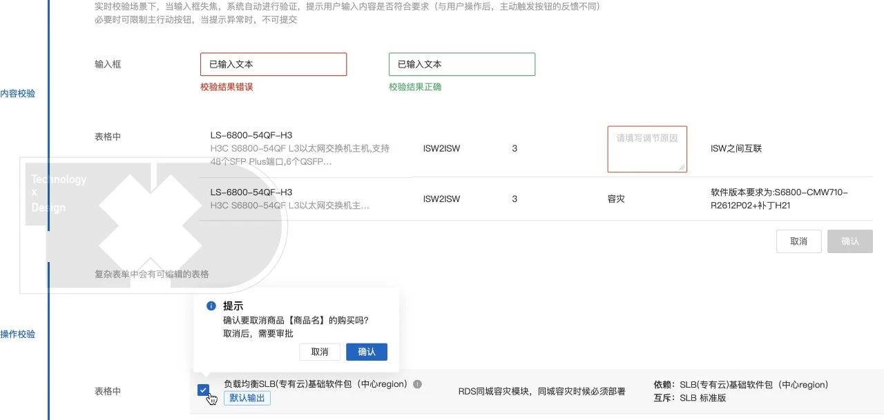 此时设计主要是对造成当前状态的原因进行说明,为预防错误而在表单提交之前提早干预,常见的组件功能和设计手段如下示例。在输入中,我们要切记,尽量不直接打断用户,不中断用户的输入操作,而是对需要注意信息,及时标记出来,确保过程中一直沟通。