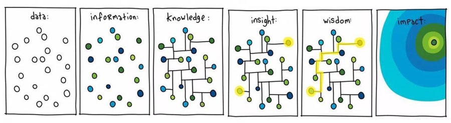 虽然这位设计师大多数的想法都未能推进实现,但这些思考和沉淀都非常的有价值。还是借用下面这张大家很熟悉的图来说,大多数设计师在基于业务的信息和数据来进行设计,如果加以时间的训练,大家基本都能形成在特定领域的知识和经验。