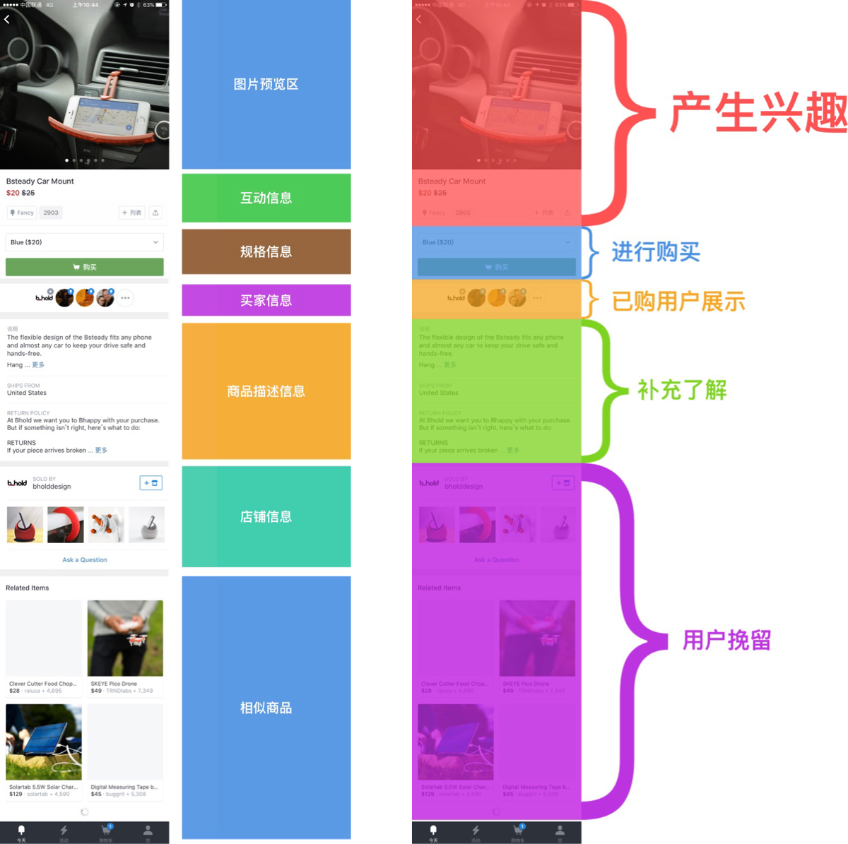 记忆比较深刻的是 Ta 给我介绍的购物车和商品详情页两个案例。这些其实并不在它的作品案例中,当初只是为了给自己公司的产品做改版而做的分析,到最后反而成了自己长期的研究方向。