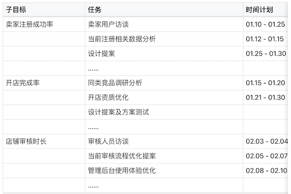 还是继续前面的例子,我们以新用户开店数量增加 10% 来进一步展开。我们可能会需要再拆分出子目标: