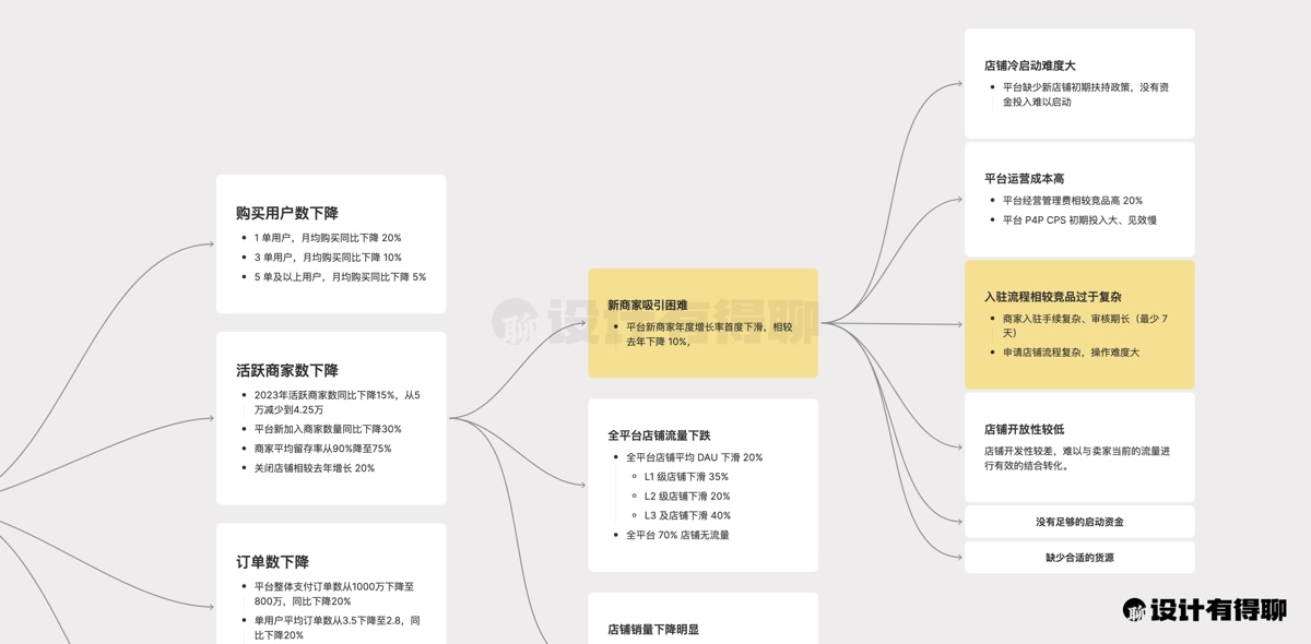 将这些问题摊开之后,我们会发现有些问题设计能提供很大的价值,而有些问题则需要平台甚至是商家自己来解决。但重要的是,我们可以清晰的看到设计所处的位置。更重要的是,如果要在评审的过程中进行 battle,我们应该怎么聊。