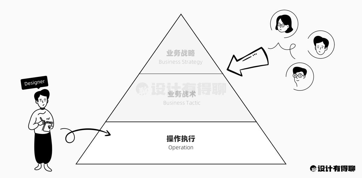 久而久之,设计师们往往对公司的核心商业目标的关注很容易仅仅停留在表面。工作淡村地成为了一种重复的任务执行,而不是商业目标分解、到设计策略制定再到设计任务执行。于是当我们在业务沟通或评审中面临来自其他人的挑战时,我们很容易在battle 中处于劣势。