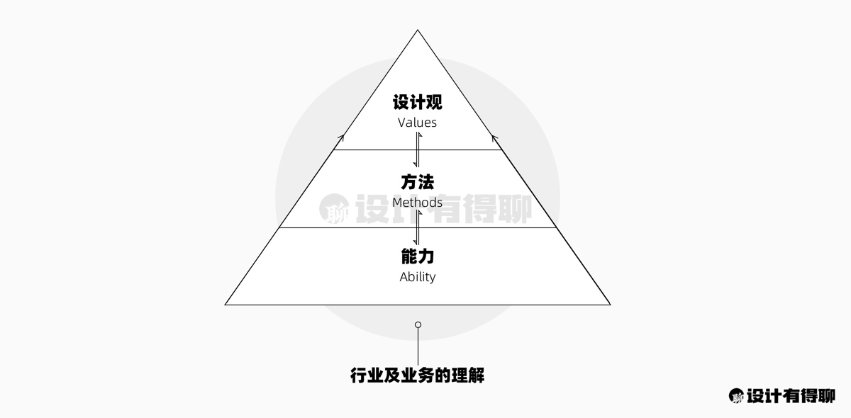 在这个三角模型中,能力是最基础的一环。这里的能力就是我们对各类设计工具的操作技能,能够通过使用不同的工具来完成对业务需求的设计还原。同时它也包含了工作中的沟通、协作等能力。