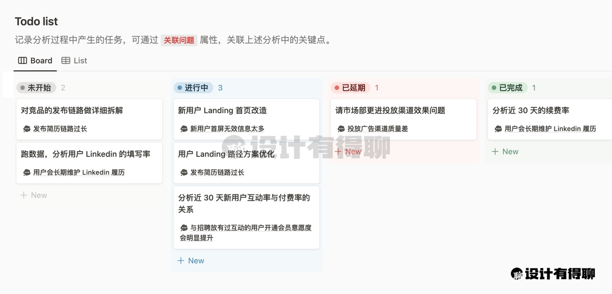 在这里我们也还可以将 todo 与我们前面「分析看板」中的内容关联起来,让我们清晰的看到这件事情是在解决哪一个问题。