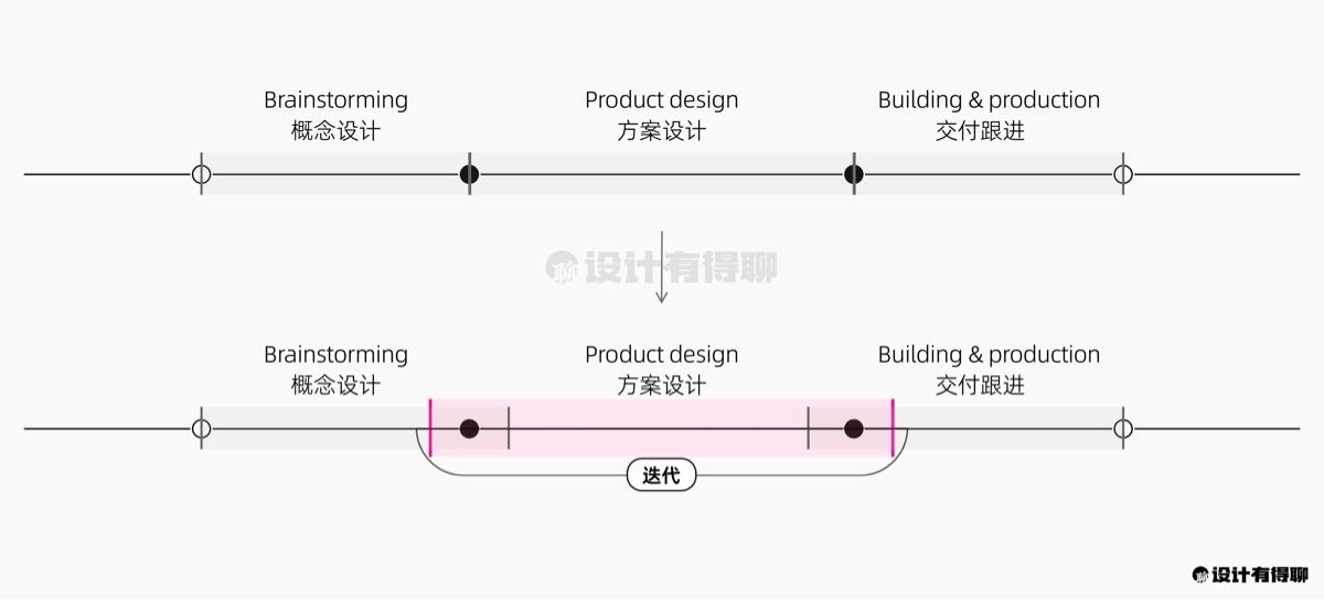 另外,对于相关的产品和研发团队来说设计的进展通常都不够透明,导致他们无法准确了解项目的实际进展,只好整天跟在设计师后面催进度,他们烦设计师也很烦。