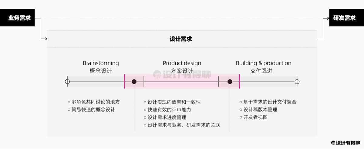 到这里,我们会发现虽然在很多团队里没有「设计需求」这个概念,都是直接从业务需求发起到研发需求,中间的设计环节被忽略掉了,但实际上设计需求这个环节里一点都不简单。
