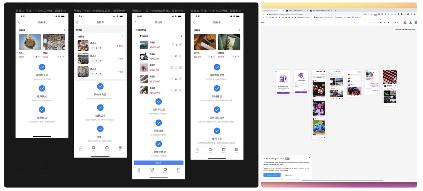 即时设计 AI 与 UIZard AutoDesigner 生成界面示意