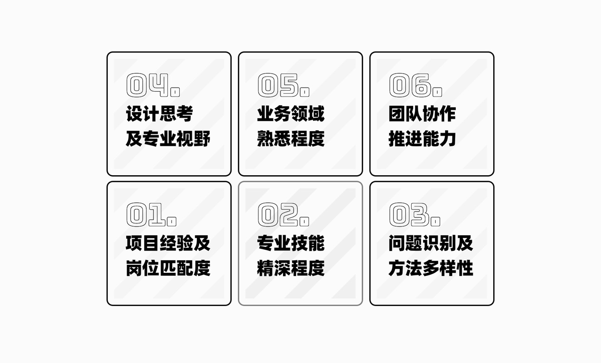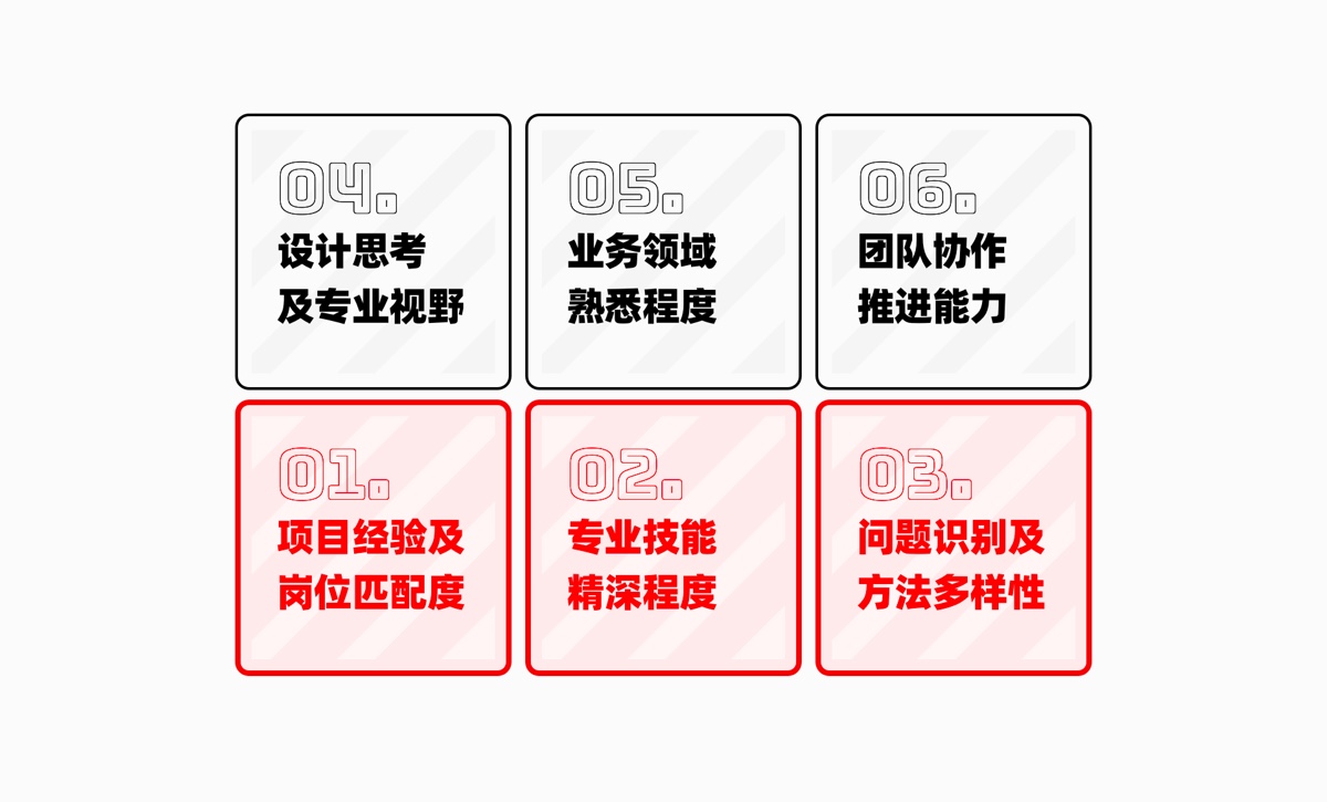 目前互联网行业中熟悉设计领域的 HR 还是非常少的,这也就意味这一面很难从专业视角产生一些共鸣,更多还是基于前面的信息来关注通用职业能力: