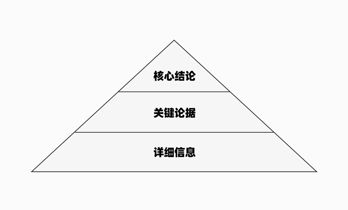通过「核心结论」、「关键论据」、「补充详细信息」,先提出自己核心观点,再罗列核心论据,最后在一些更为细节的信息进行补充,这种自上而下的结构能够非常快速有效的传递信息。