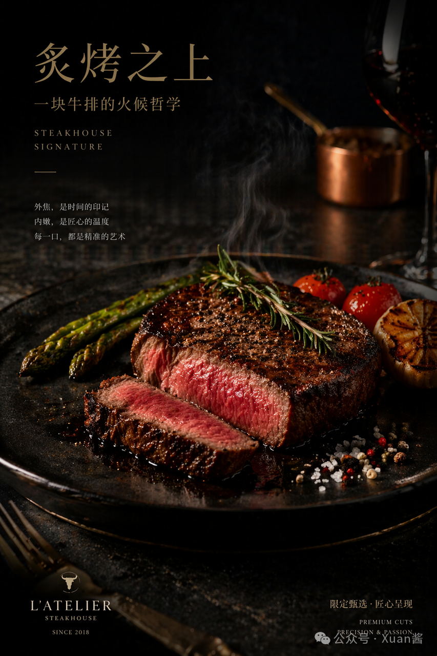 Banana2生成的牛排,主体小一点,塑料感强一点。而Image2的,牛排主体更突出。同时,光影设计也非常能凸显牛排的色泽,看起来明显比Banana2的更有食欲。