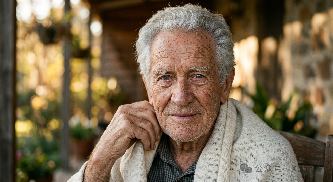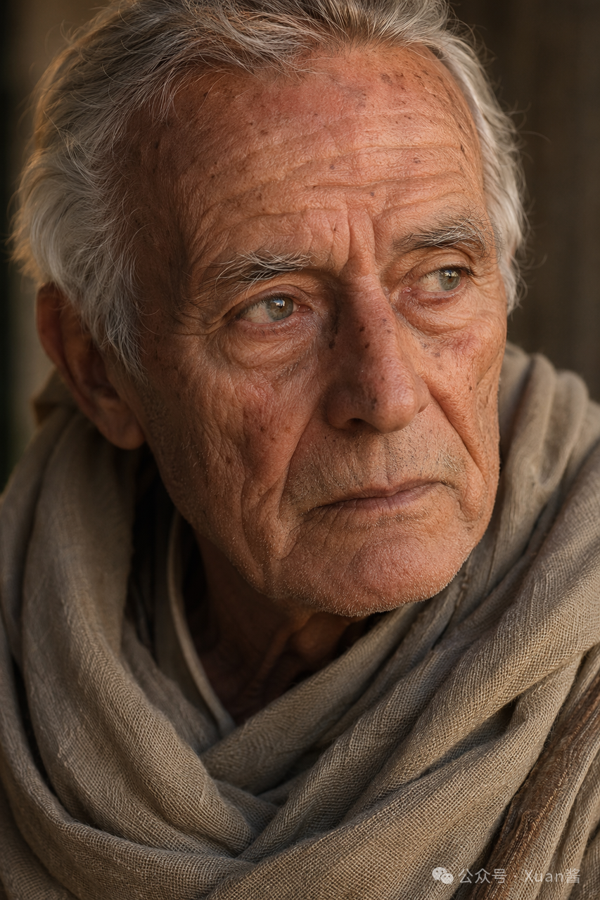这是Banana2生成的老人,已经很真实了,但仔细看眼睑部位,其实还是有点奇怪,额头上的老年斑也过于夸张了。